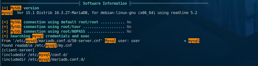 Here we get the MySQL credentials mmuser:Crack_The_MM_Admin_PW , and an obvious hint that we need to crack the password we're about to find in the MySQL database: