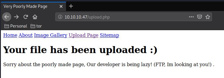 so the interesting webpages here are /uploads.html and /uploads.php:
