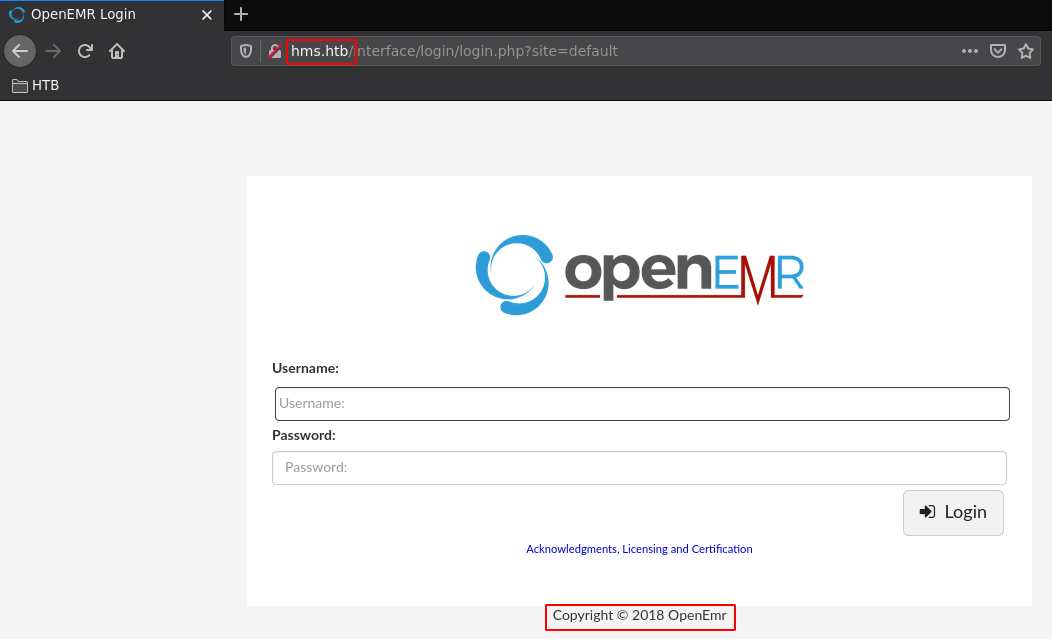 Apparently there's another project called 'HMS' so let's add hms.htb to our hosts file: