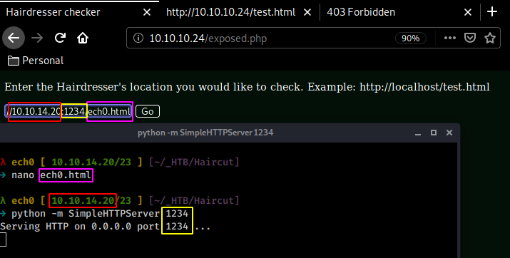 Ξ» nihilist [ 10.10.14.20/23 ] [~/_HTB/Haircut]