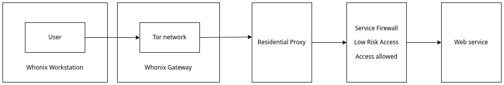 Virtual Machine: Whonix (that must be dedicated to the (you -> Tor -> residential proxy -> website) setup