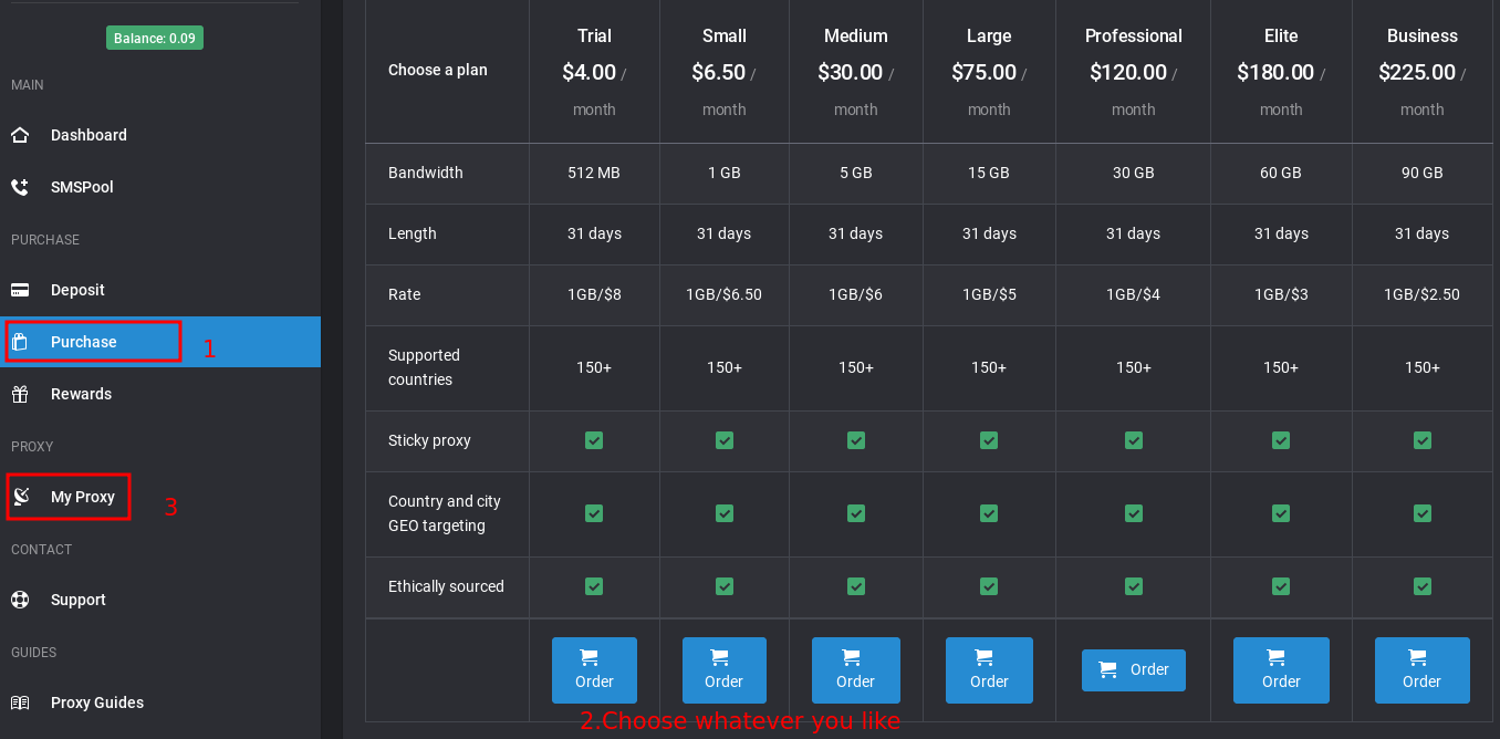 When your deposit gets credited, purchase the proxy.