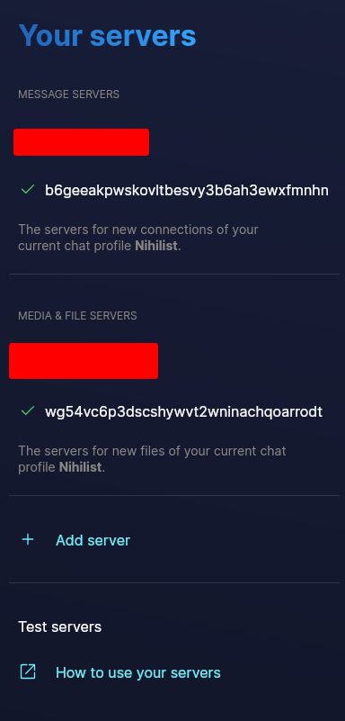 Sidenote: One important thing to note though is that you shouldn't be the only one to use your own simplex servers as if you are the only one to use that one simplex server, people may figure out that you're the same person when trying to use different profiles. This is why you should list your simplex servers publicly somewhere, either in your own community like i did here: