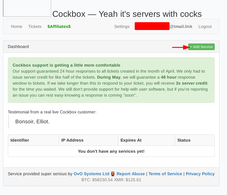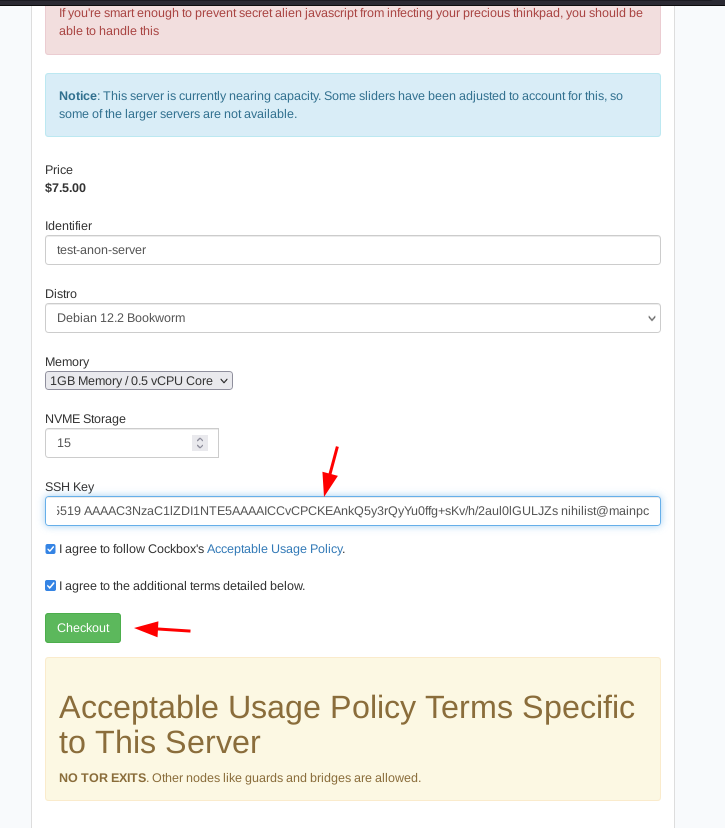 Purchasing the server anonymously (using Monero)