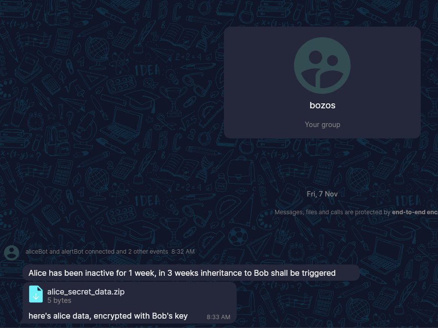 - Now wait for the specified time in your group and watch the alerts and secret files get posted as the BOZOs are slowly and methodically annihilated by their adversaries
