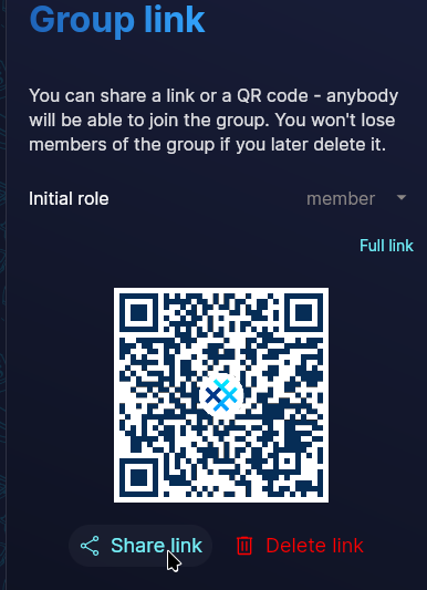 On the invite members tab that opens automatically, should which member should join the group at creation. In the present case, Alice is creating a dedicated Channel with Bob and Charlie so they can inherit her accesses should she get busted