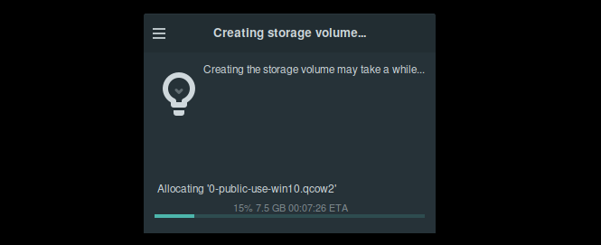 Next we do not virtualize anything using closed-source software like VMWare Workstation or else. We use QEMU/KVM with virt-manager, which is an open source hypervisor :