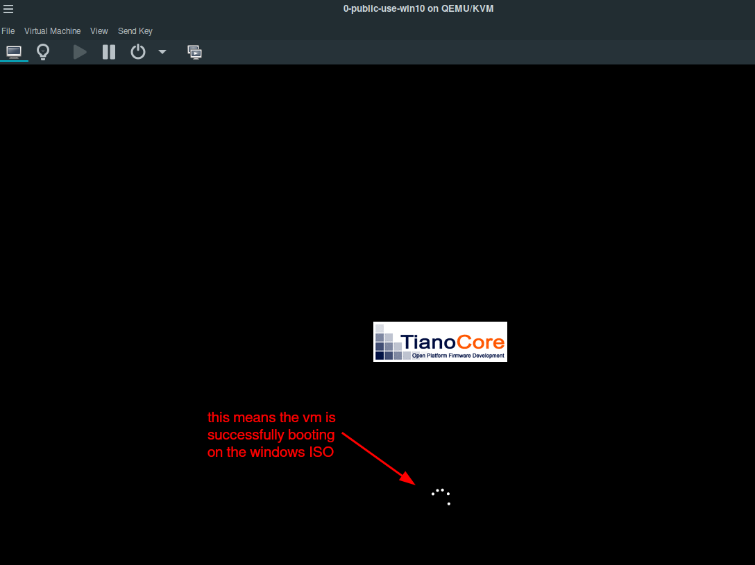 Then Bob can launch the windows VM (make sure that the VM boots onto the disk instead of the iso in the boot settings):