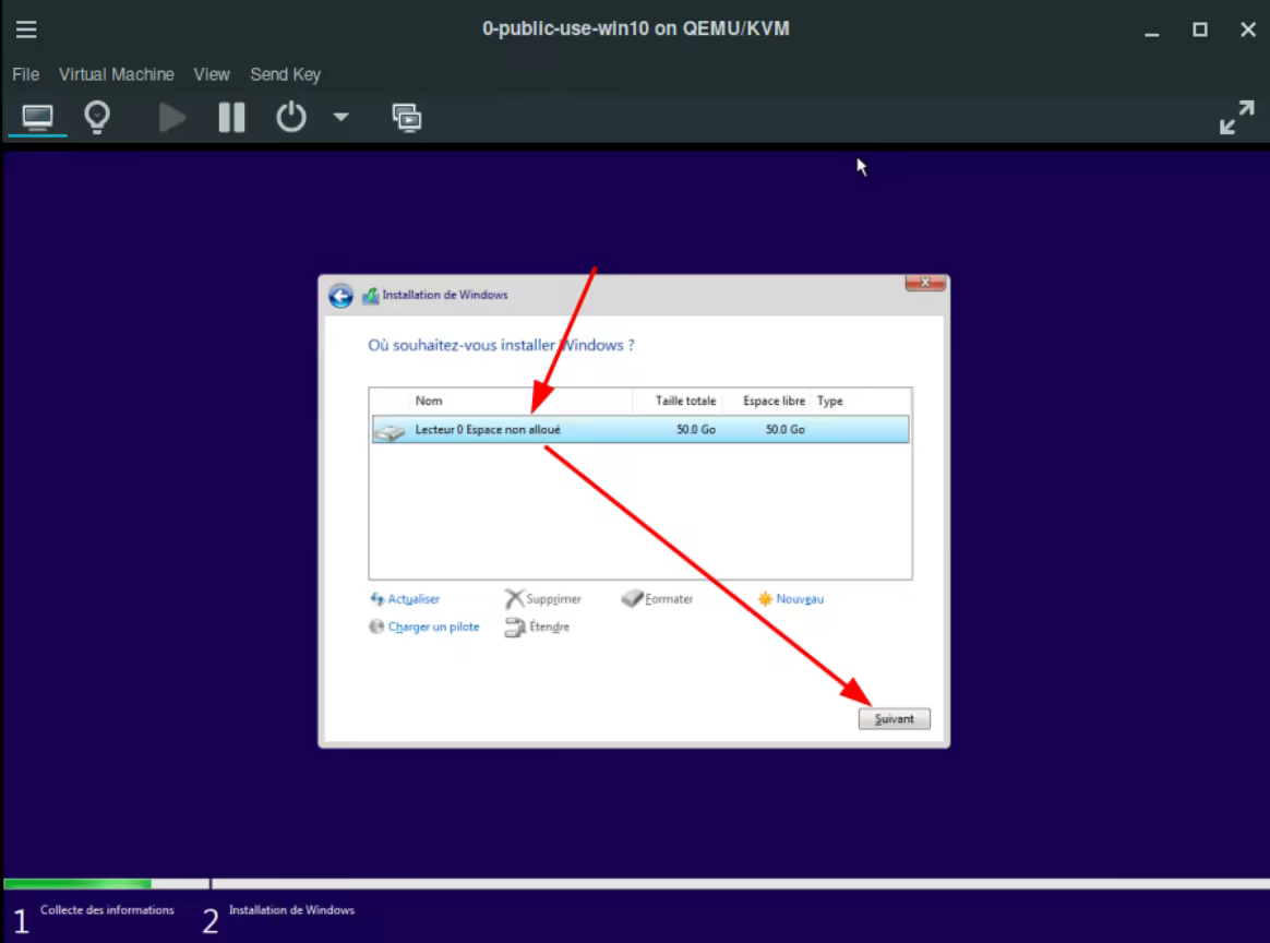 Then in the windows VM he installs the OS on the virtual disk: