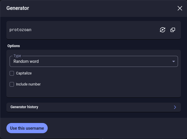 To use a random generator, I recommend the one provided by Bitwarden. It is very easy to use: