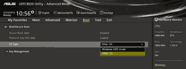 Boot > OS Type > Other OS