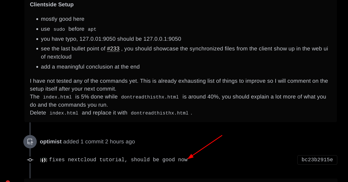 Don't mind the different PR example in this section, we're back to the nextcloud one later