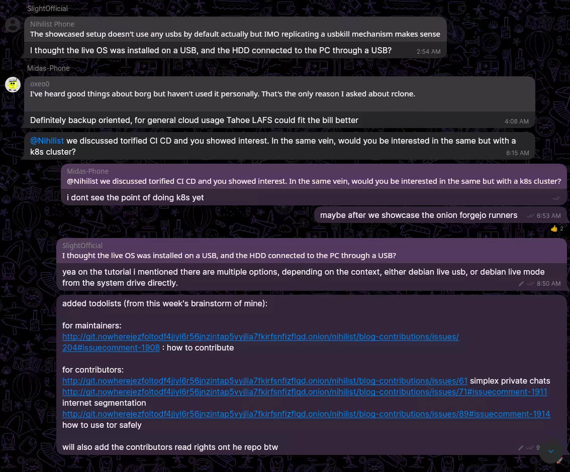 Therefore make sure that you take part in the criticisms and debates in in the opsec chatroom, as this is the place where you'll see the most criticism coming from, so if there are any valid criticisms coming from there, make sure that the criticism is at least saved somewhere (ideally on the targeted git issue, or on a new one that you created yourself.)
