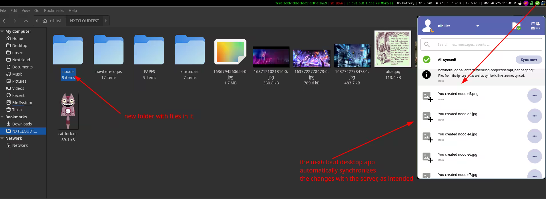 And here as you can see the changes are automatically getting picked up by the nextcloud desktop client, and synchronized to the nextcloud server automatically aswell.