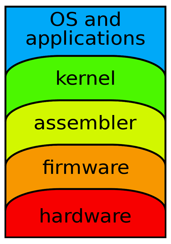 Layer 1: Firmware (ex: low-level software to provide control over CPU, motherboard, GPU, etc)