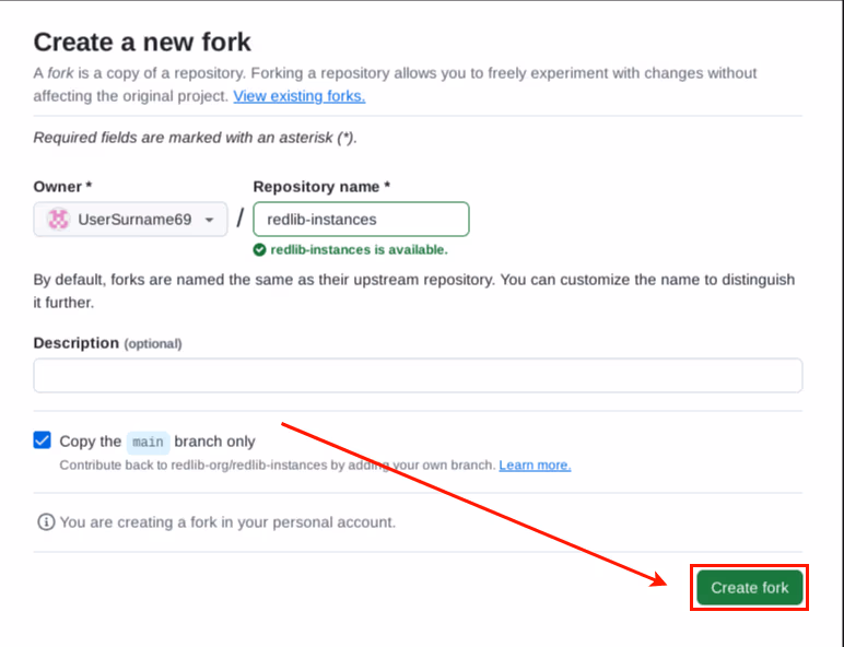 After signing in, fork the Redlib Instances repository.