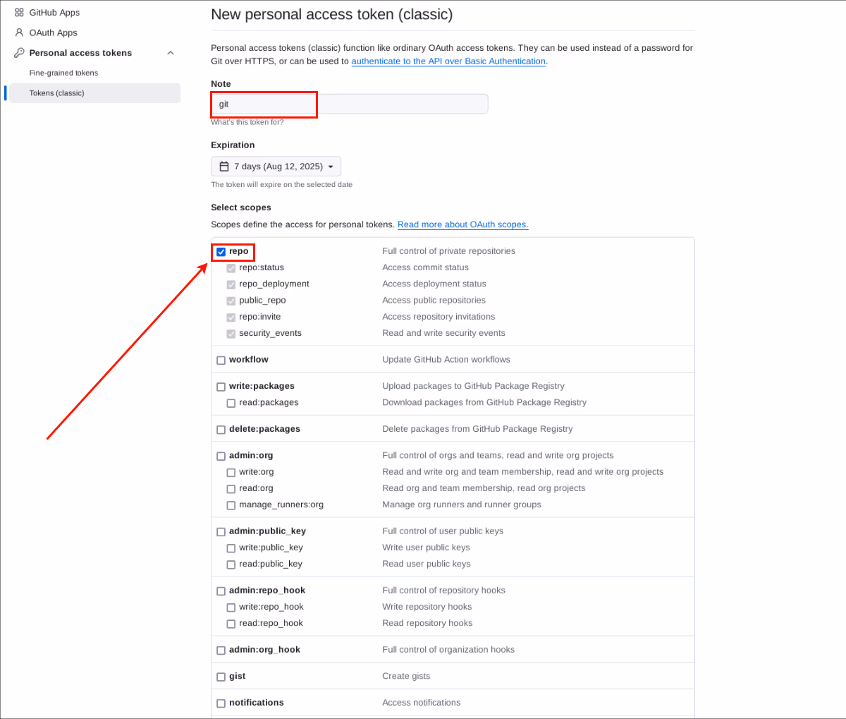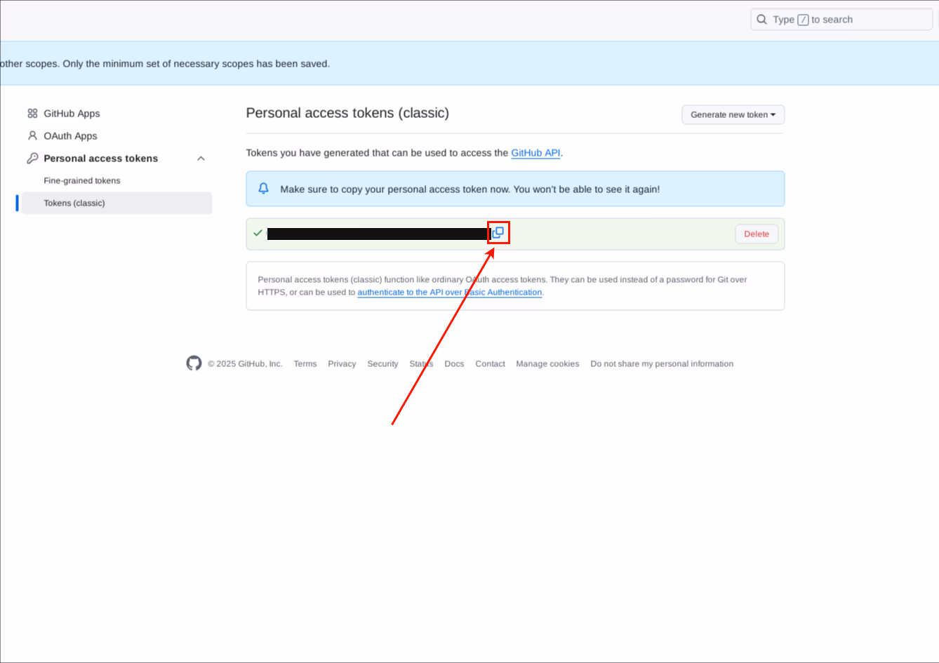 Go to Classic tokens, and click on Generate new token