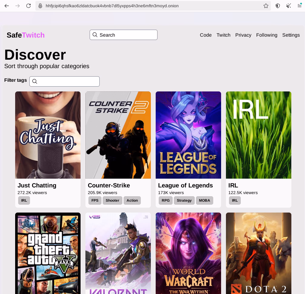 Notes on using SafeTwitch through Tor