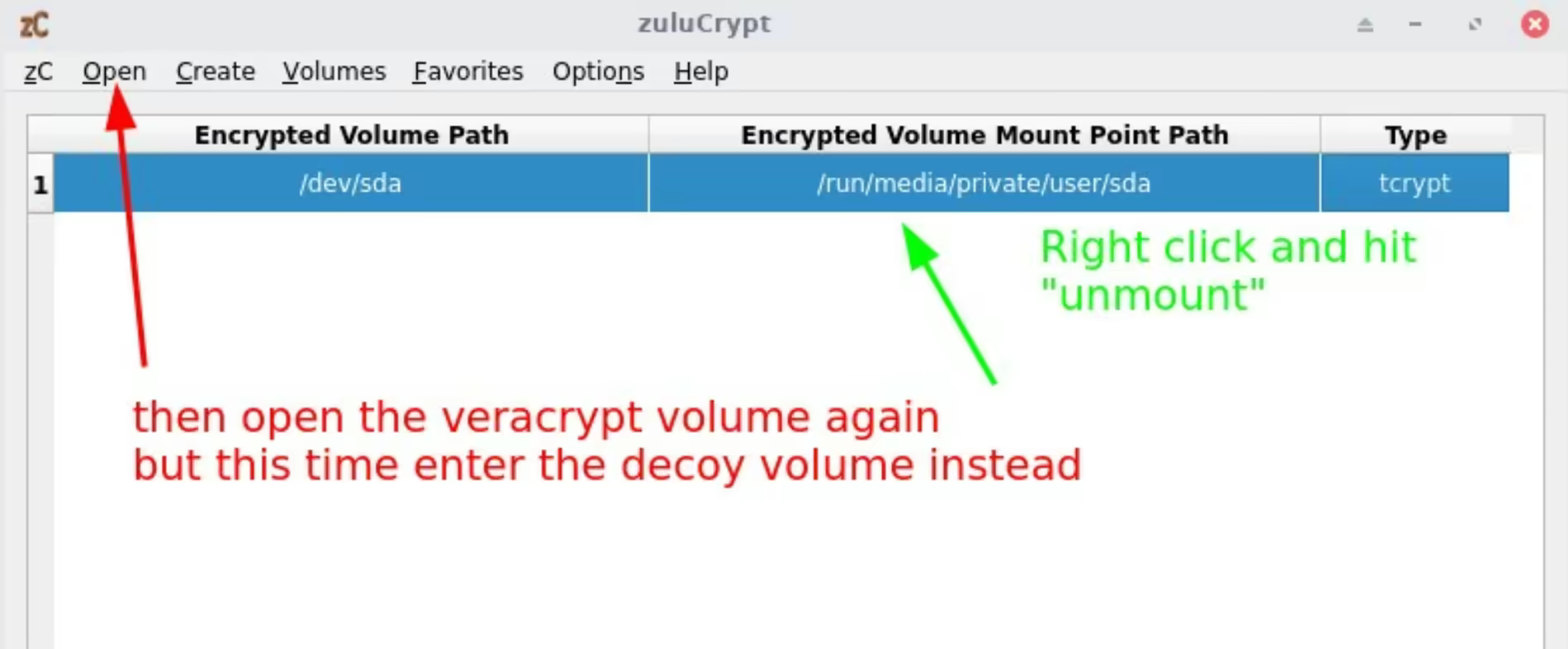 Here is the important part: you mention both passwords: the top one is Password A: to unlock the decoy volume, and the bottom one is the secret password, you must be the only one that knows it because it is the key to unlock (and reveal) the hidden volume NEVER WRITE IT DOWN, ALWAYS REMEMBER IT!