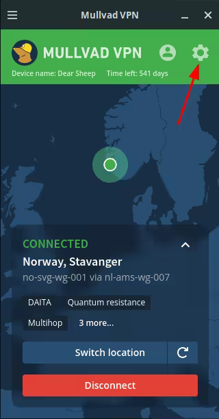 So in case if the adversary is monitoring your internet connection from the ISP point of view, they may notice when the connections to the D,E, and F, which could be used to potentially prove the existance of the sensitive VM, we also want to make sure that they can't see the connections that we're making to Tor, using a (you -> VPN -> Tor setup), by adding a VPN (with DAITA and multihop enabled) on the Host OS level: