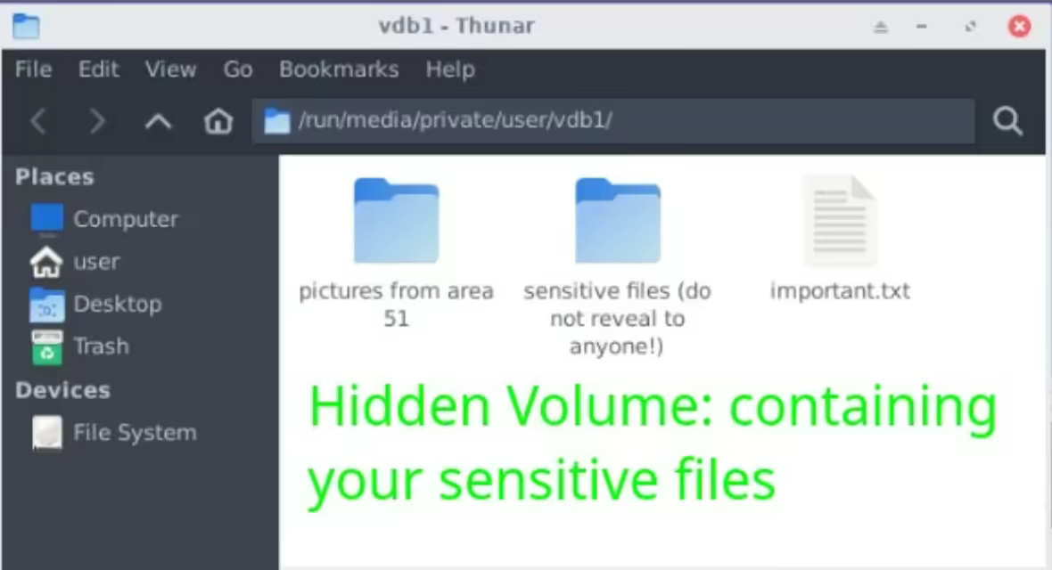 Today, we'll use it as a replacement for VeraCrypt - a free open source disk encryption software for Windows, Mac OSX and Linux. Being based on TrueCrypt, VeraCrypt offers a unique feature called Hidden Volumes which can give us Plausible Deniability. zuluCrypt supports both TrueCrypt and VeraCrypt volumes while being better integrated in Linux ecosystem. It also comes preinstalled with kicksecure OS.