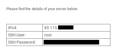 Once you get your server provisioned it's time to access the server via SSH. With the server provider I'm using, my details were sent via email but yours may be on your account dashboard.