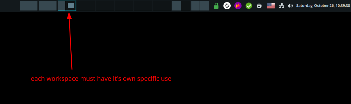 For instance, i have 10 workspaces divided like so, based on the general workflow we highlighted in this previous tutorial: