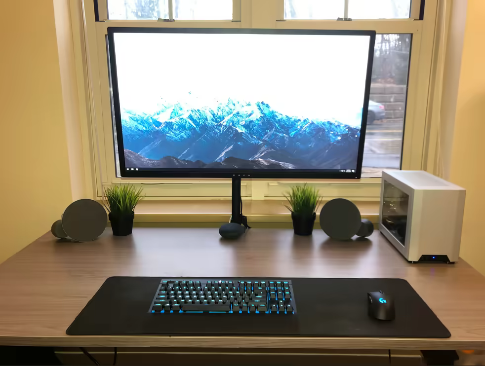 First thing you need to do is clean up your room, and especially your desk. It should have your keyboard, your mouse, your monitor(s) and it must be well cable-managed.
